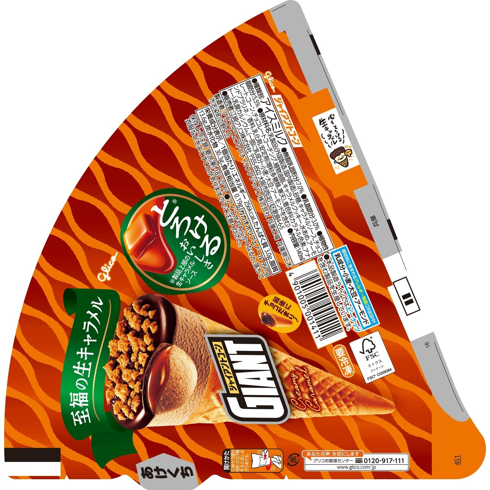 キャラメルクランチにキャラメルソース、キャラメルアイスを組み合わせた、キャラメル尽くしのジャイアントコーンです。キャラメルには北海道産の生クリームを使用し、上質なおいしさを楽しめます。コーン先端には「チョコだまり」があり、最初から最後までおいしく食べられます。