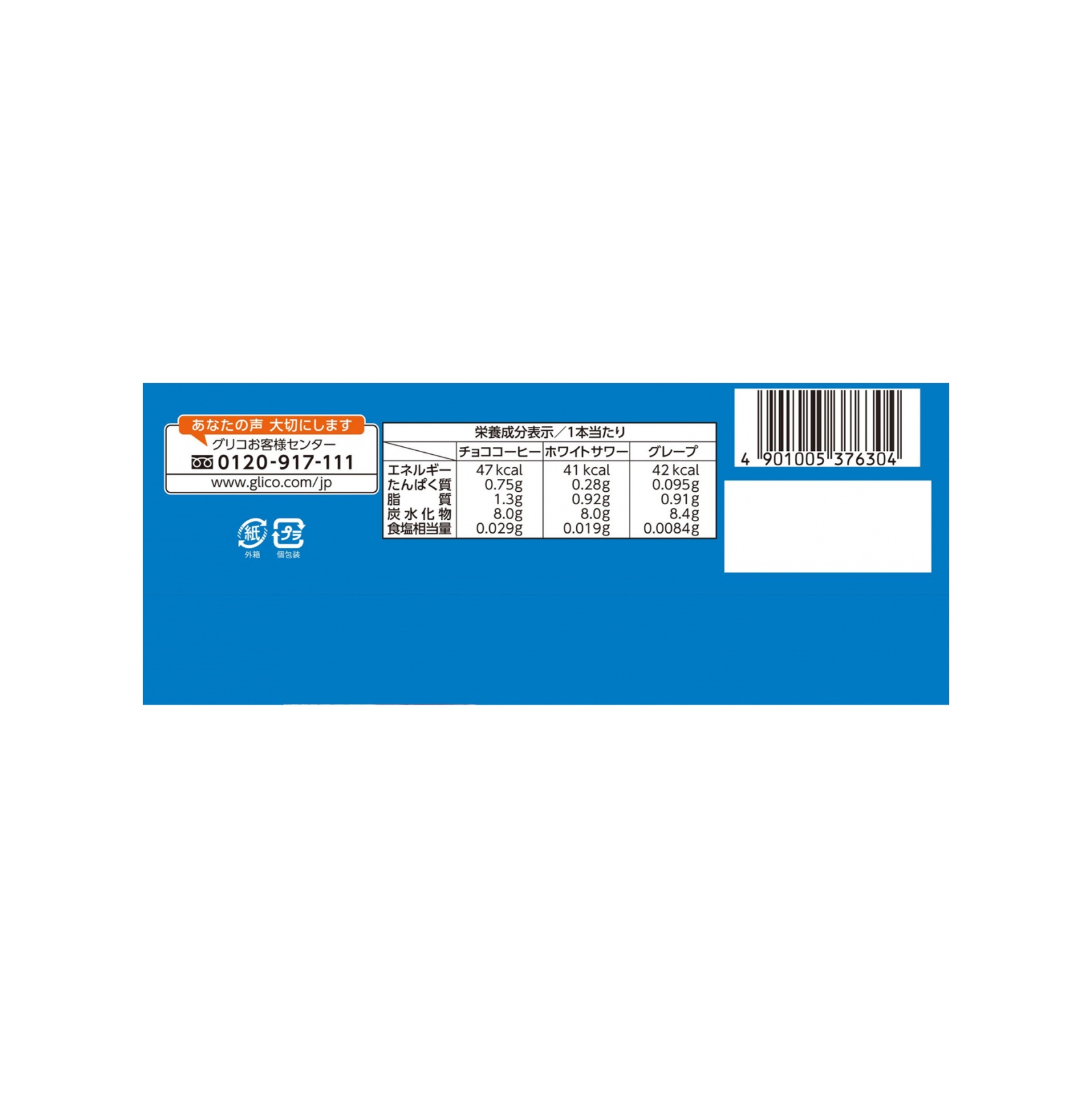 見出し(表示されません) 見出し(表示されません) 見出し(表示されません) 見出し(表示されません) チョココーヒー ホワイトサワー グレープ エネルギー 47kcal 41kcal 42kcal たんぱく質 0.75g 0.28g 0.095g 脂質 1.3g 0.92g 0.91g 炭水化物 8.0g 8.0g 8.4g 食塩相当量 0.029g 0.019g 0.0084g