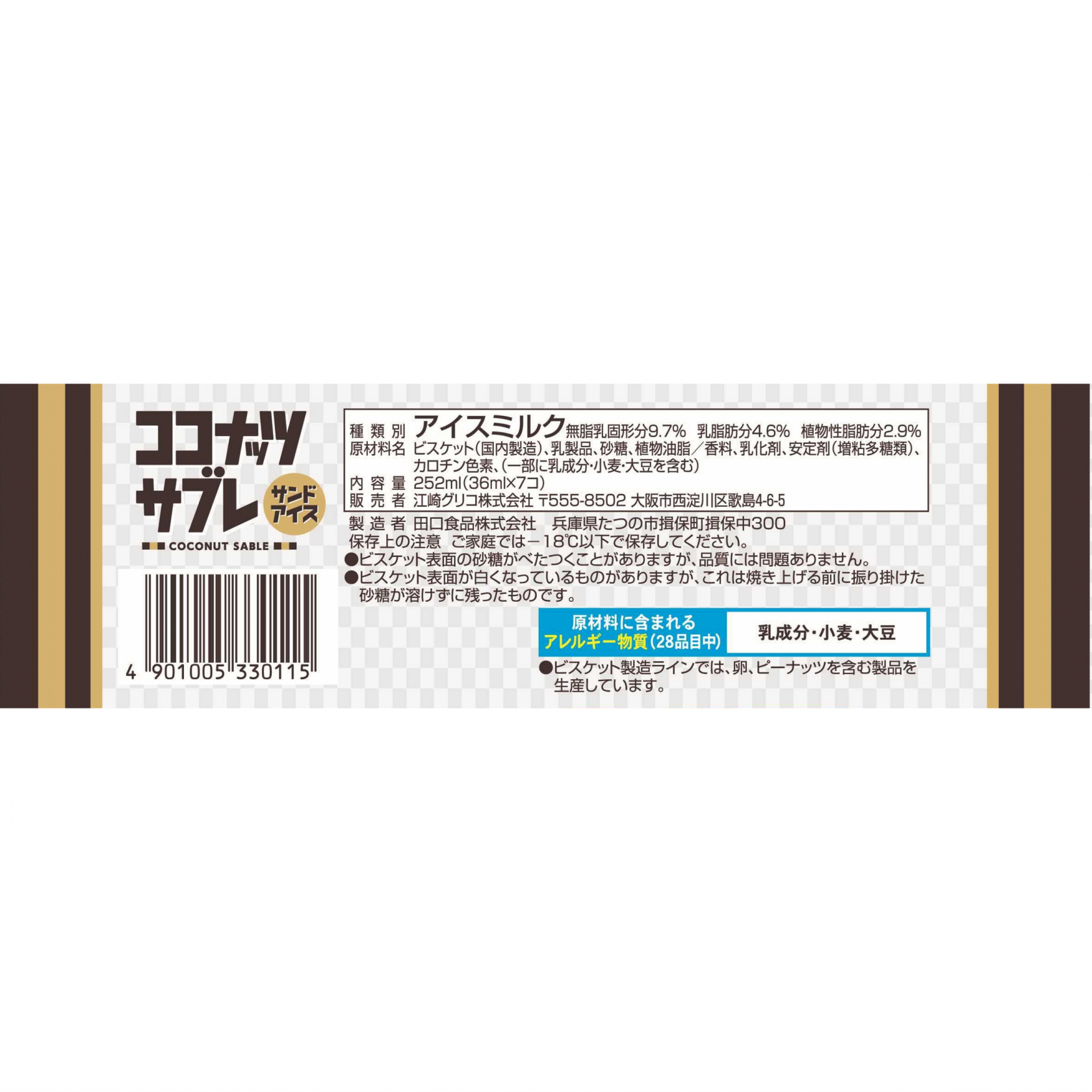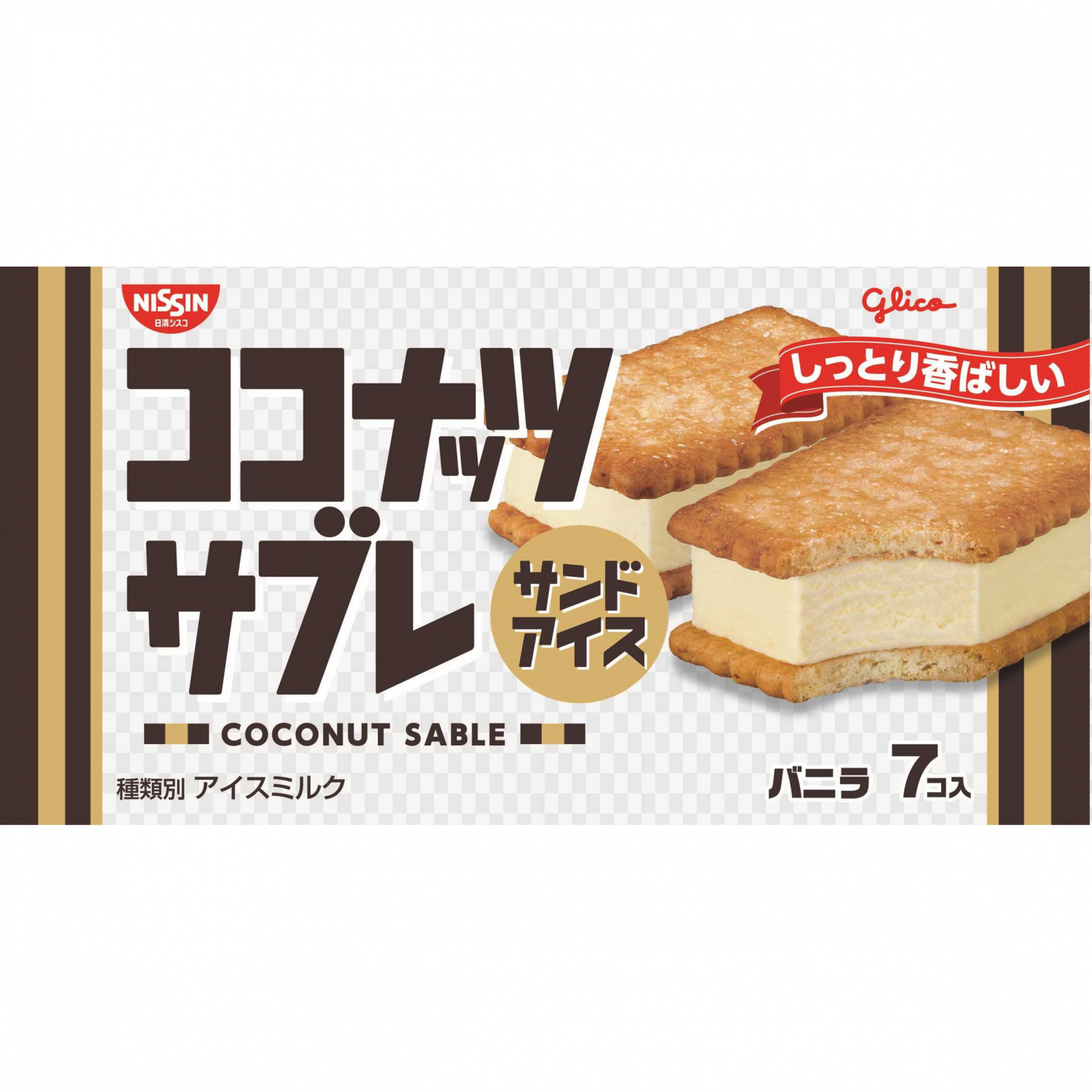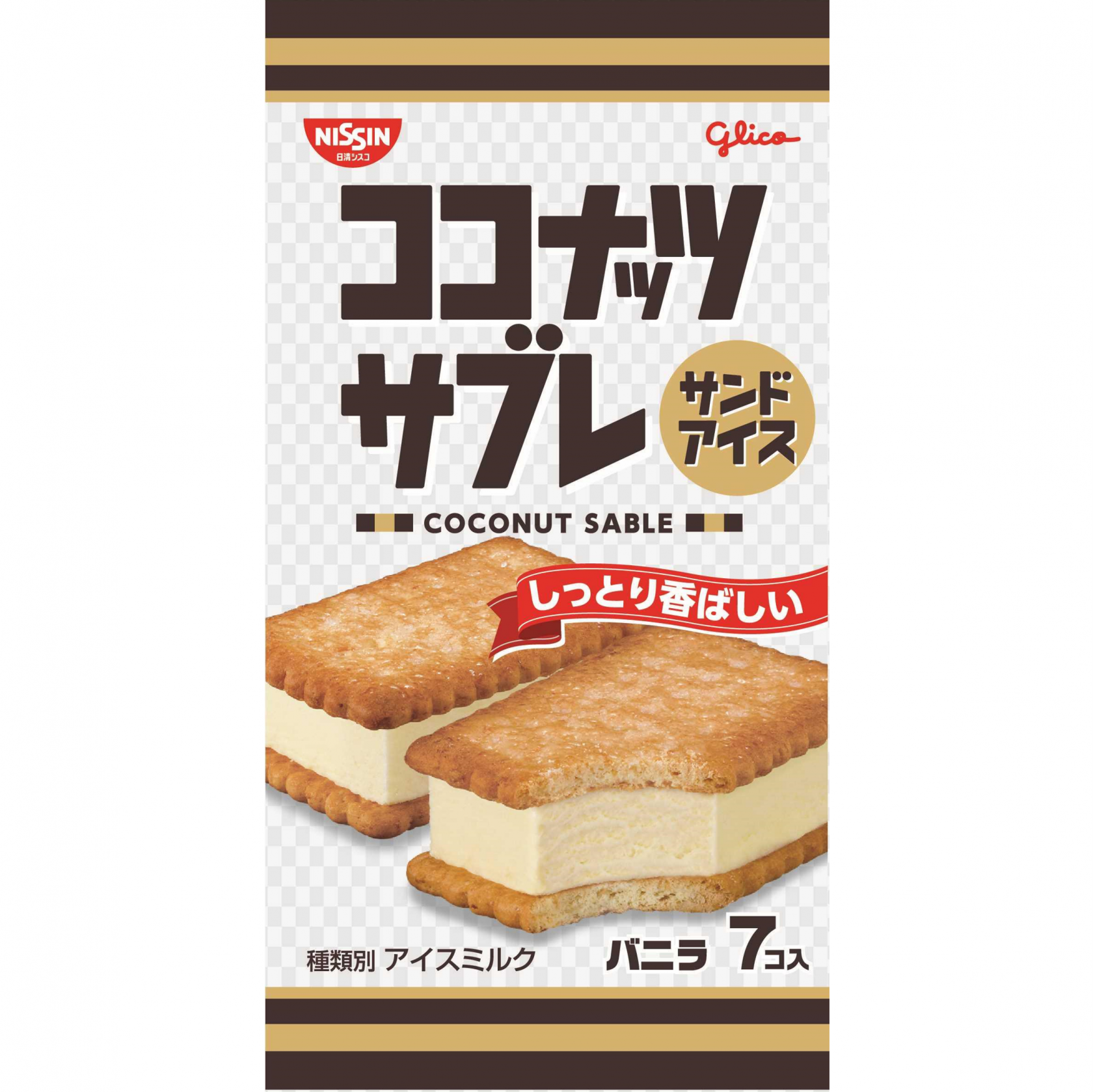 天然ココナッツとシュガーコートのあきないおいしさが人気のロングセラーブランド『ココナッツサブレ』とバニラアイスの香ばしい組み合わせ。ご家族やお友達といっしょに食べられる7コ入り。