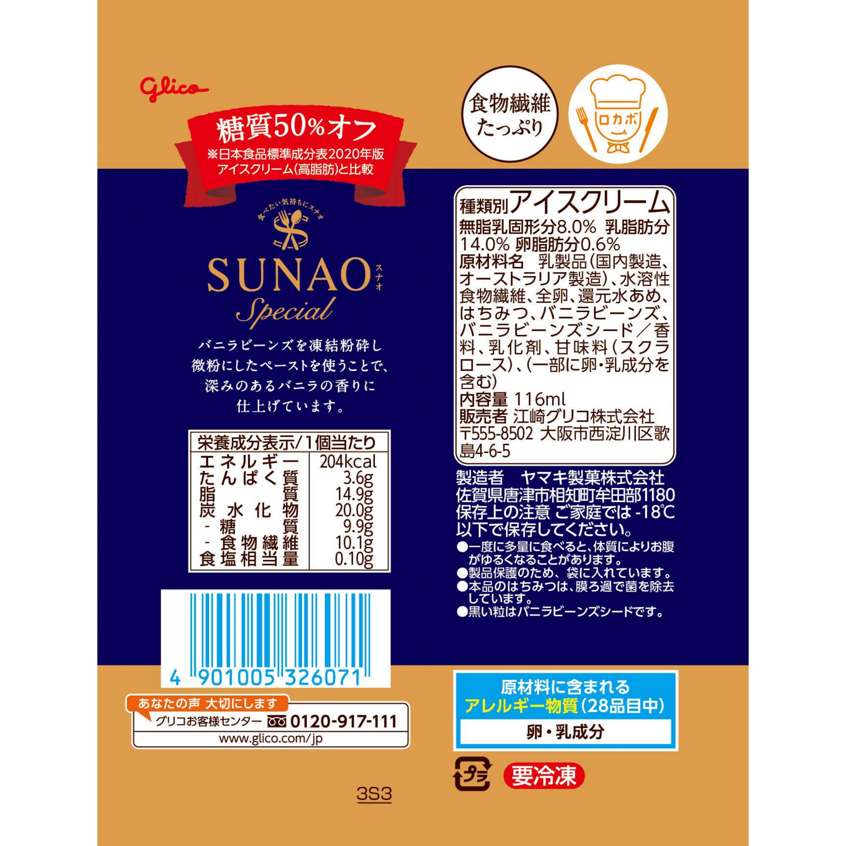 乳製品(国内製造、オーストラリア製造)、水溶性食物繊維、全卵、還元水あめ、はちみつ、バニラビーンズ、バニラビーンズシード/香料、乳化剤、甘味料(スクラロース)、(一部に卵・乳成分を含む)