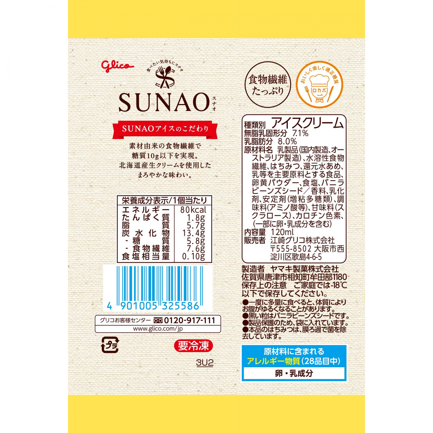乳製品(国内製造、オーストラリア製造)、水溶性食物繊維、はちみつ、還元水あめ、乳等を主要原料とする食品、卵黄パウダー、食塩、バニラビーンズシード/香料、乳化剤、安定剤(増粘多糖類)、調味料(アミノ酸等)、甘味料(スクラロース)、カロチン色素、(一部に卵・乳成分を含む)