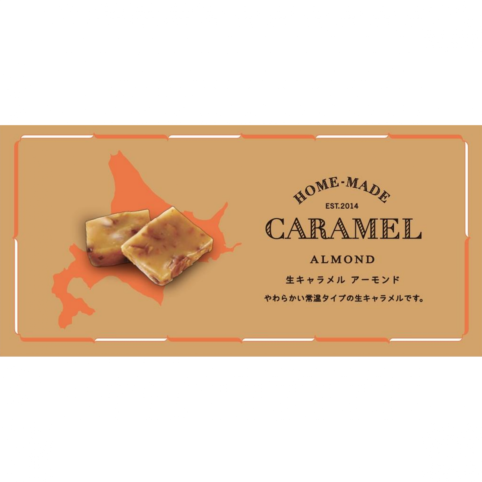 北海道産の食材を贅沢に使用し、店内に設置したキッチンの銅釜で丁寧に炊き上げて作る、ホームメイド生キャラメルです。店内で丁寧にローストした香り高いアーモンドを砕いて、キャラメルと合わせました。作り立ての香ばしさと贅沢な食感を楽しめます。