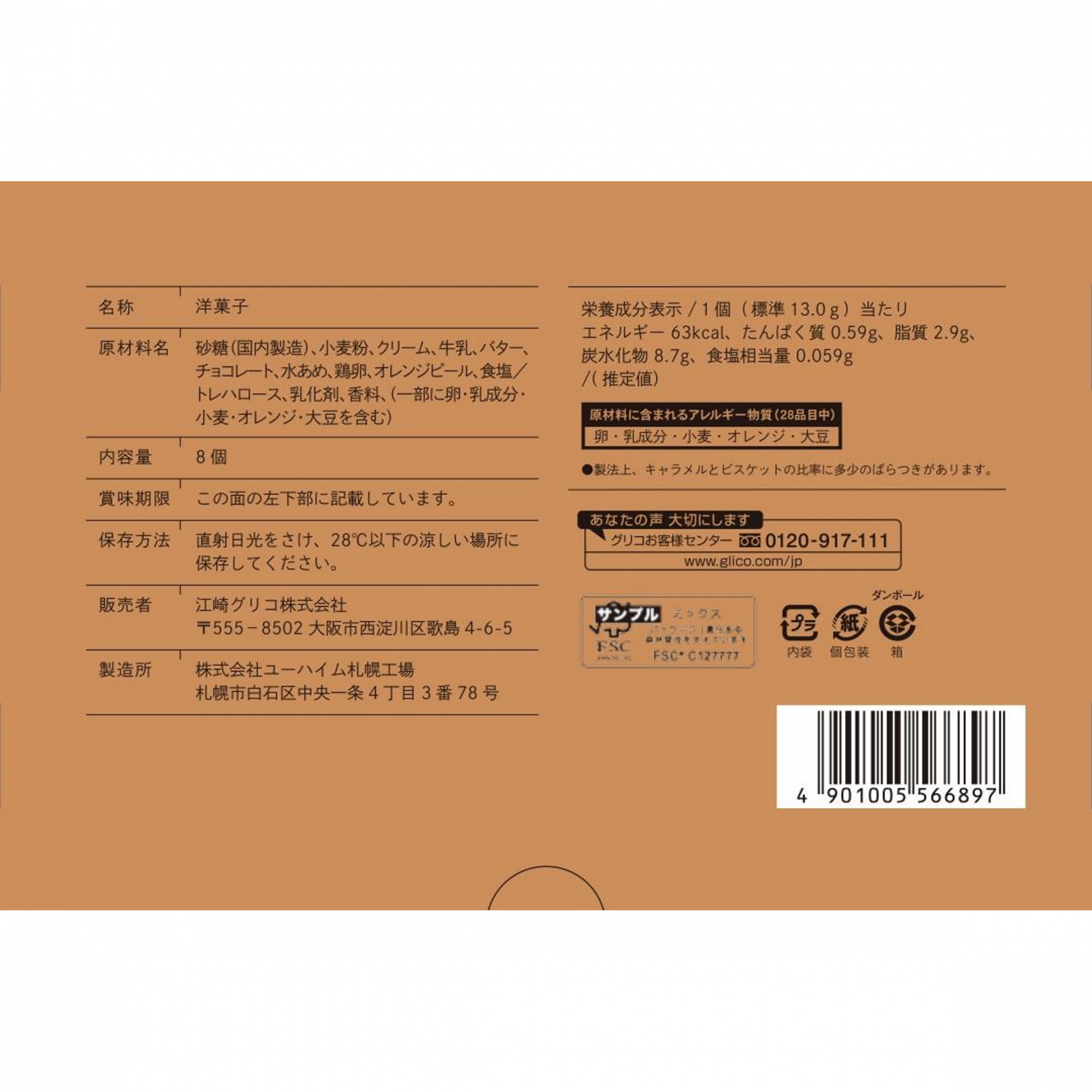 砂糖(国内製造)、小麦粉、クリーム、牛乳、バター、チョコレート、水あめ、鶏卵、オレンジピール、食塩/トレハロース、乳化剤、香料、(一部に卵・乳成分・小麦・オレンジ・大豆を含む)