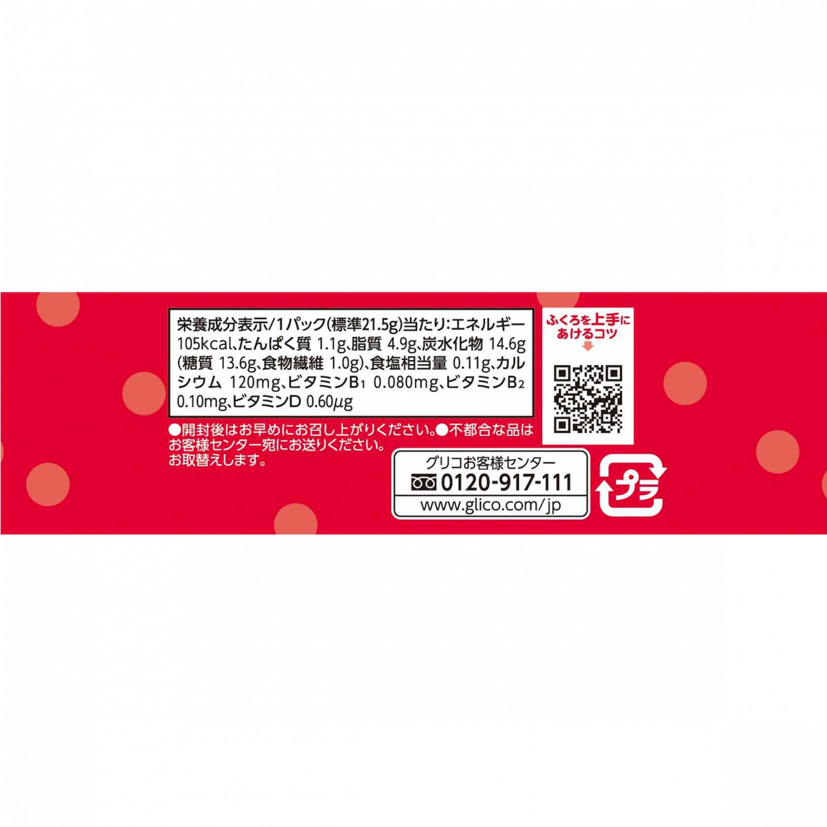 見出し(表示されません) 見出し(表示されません) エネルギー 105kcal たんぱく質 1.1g 脂質 4.9g 炭水化物 14.6g -糖質 13.6g -食物繊維 1.0g 食塩相当量 0.11g カルシウム 120mg ビタミンB1 0.080mg ビタミンB2 0.10mg ビタミンD 0.60μg 参考値 1パック(標準21.5g)当たり