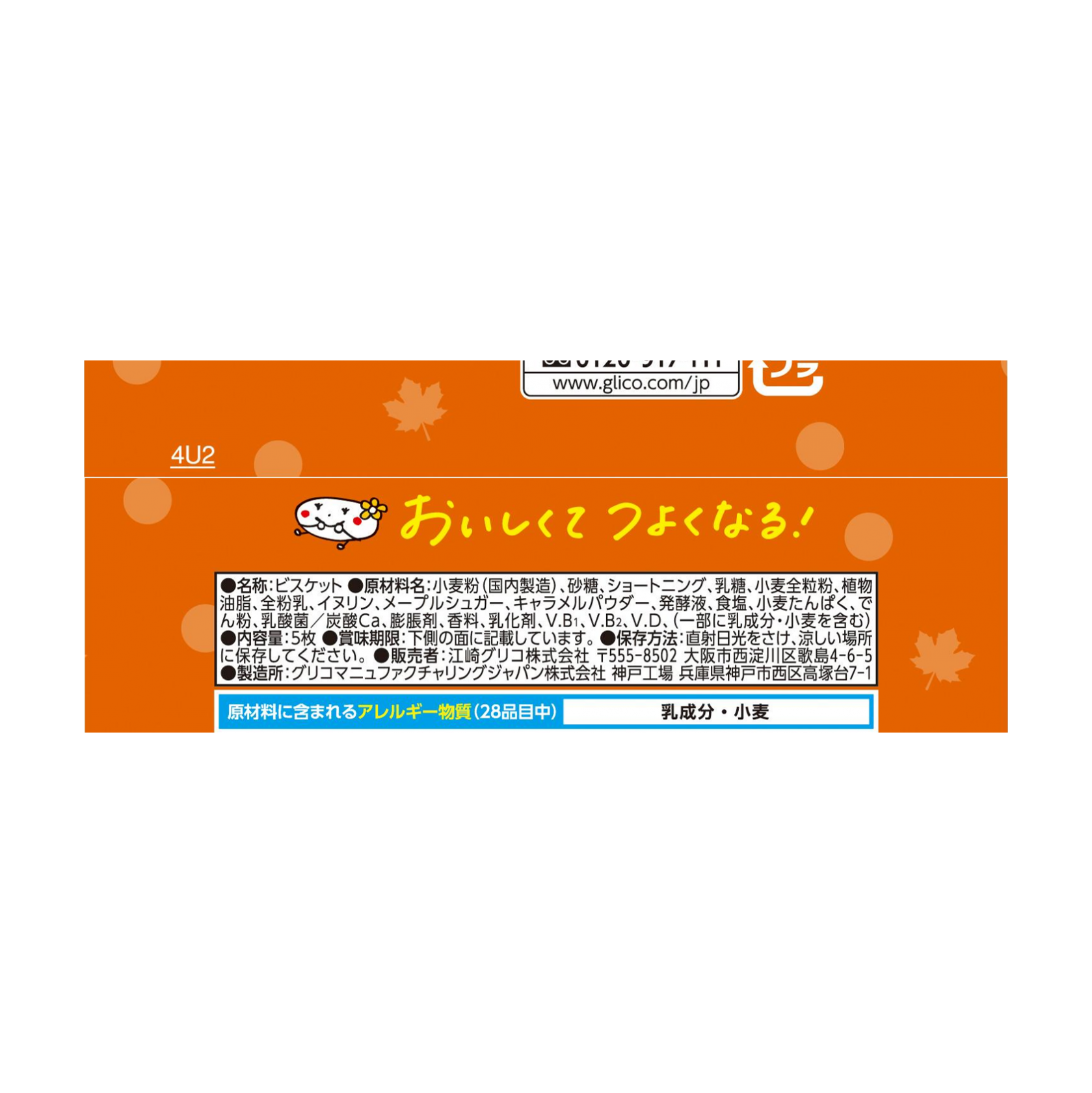小麦粉(国内製造)、砂糖、ショートニング、乳糖、小麦全粒粉、植物油脂、全粉乳、イヌリン、メープルシュガー、キャラメルパウダー、発酵液、食塩、小麦たんぱく、でん粉、乳酸菌/炭酸Ca、膨脹剤、香料、乳化剤、V.B1、V.B2、V.D、(一部に乳成分・小麦を含む)