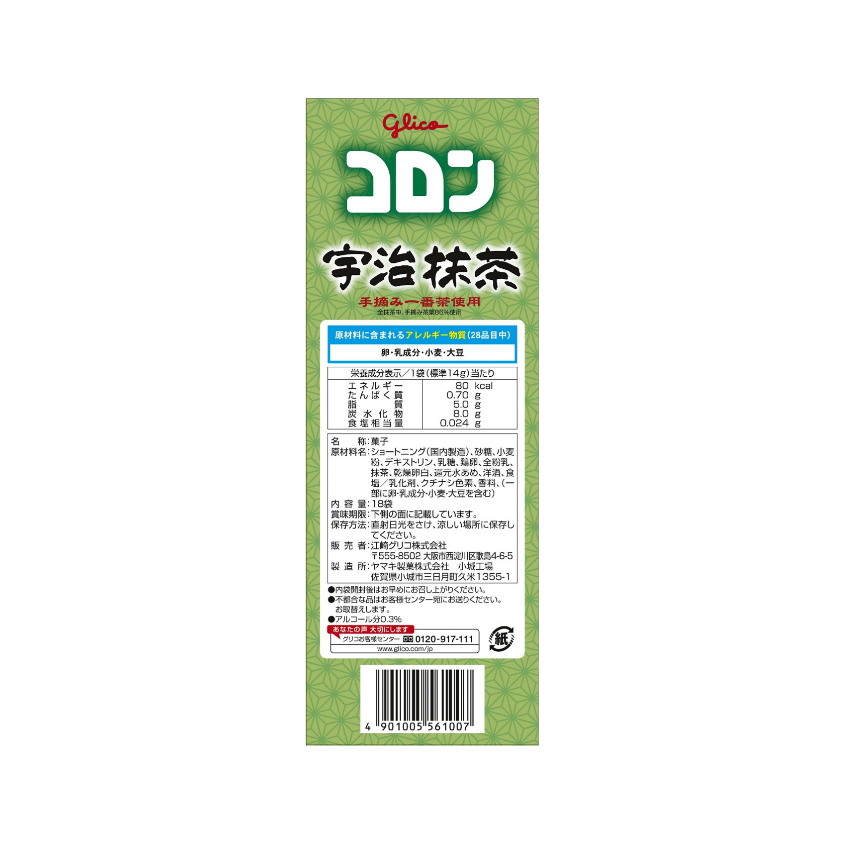 ショートニング(国内製造)、砂糖、小麦粉、デキストリン、乳糖、鶏卵、全粉乳、抹茶、乾燥卵白、還元水あめ、洋酒、食塩/乳化剤、クチナシ色素、香料、(一部に卵・乳成分・小麦・大豆を含む)