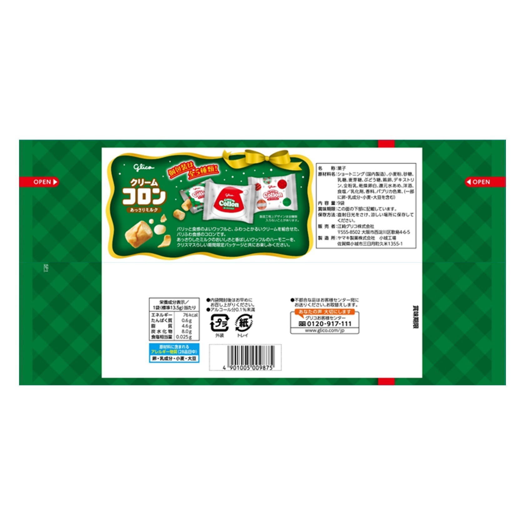 パリッと食感のよいワッフルで、ふわっと軽い甘さのミルククリームをくるっと巻きました。食感と味わいがクセになる一口サイズのプチスイーツです。クリスマスらしい限定パッケージです。