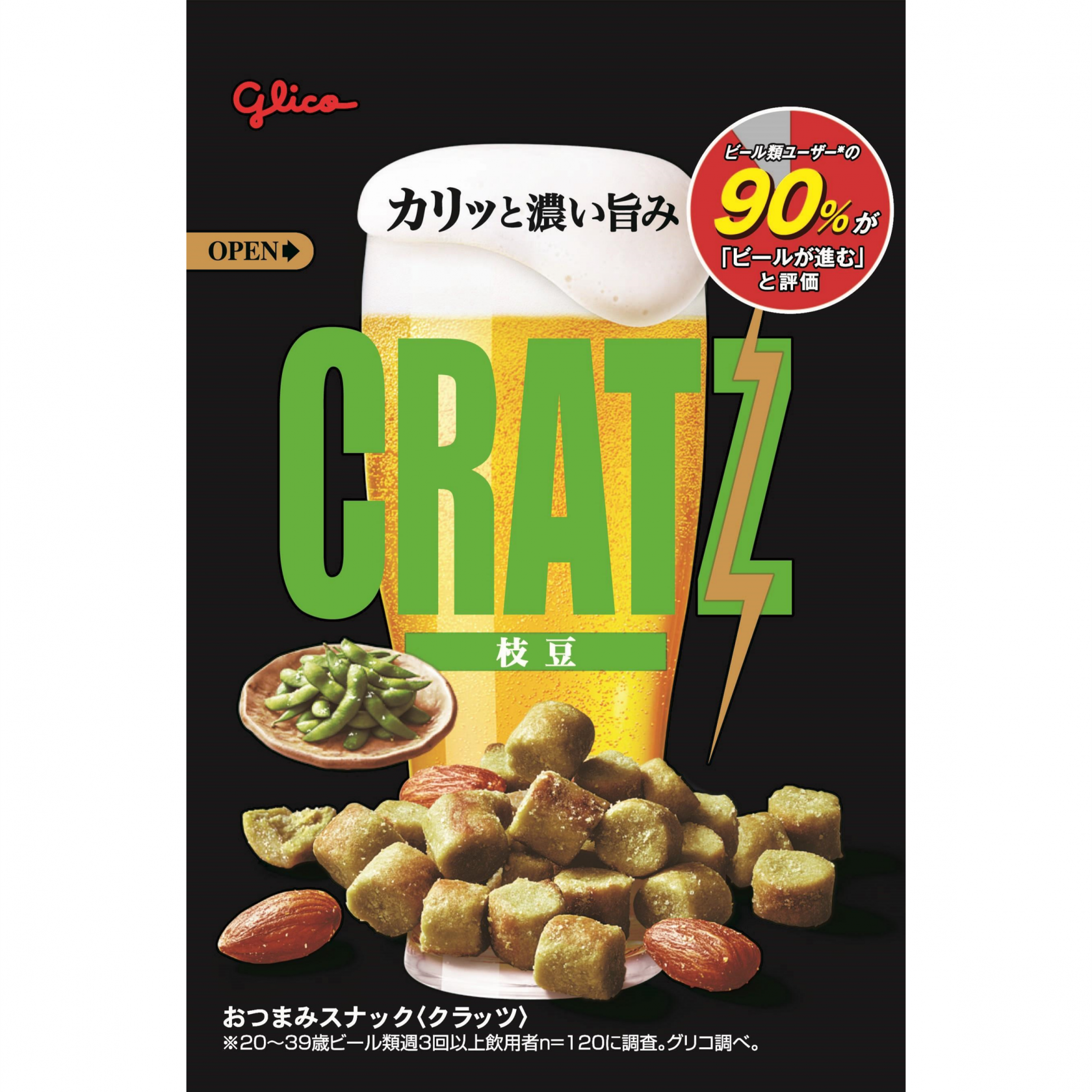 枝豆の風味が濃厚なおつまみスナック。 発酵した生地に旨みの効いたオイルを浸み込ませました。 カリッと心地よい食感。じっくりと堅焼きに焼き上げ、外はカリカリ、中はサクサクです。90%のビールユーザーに「ビールが進む」と評価されたおつまみスナックです。