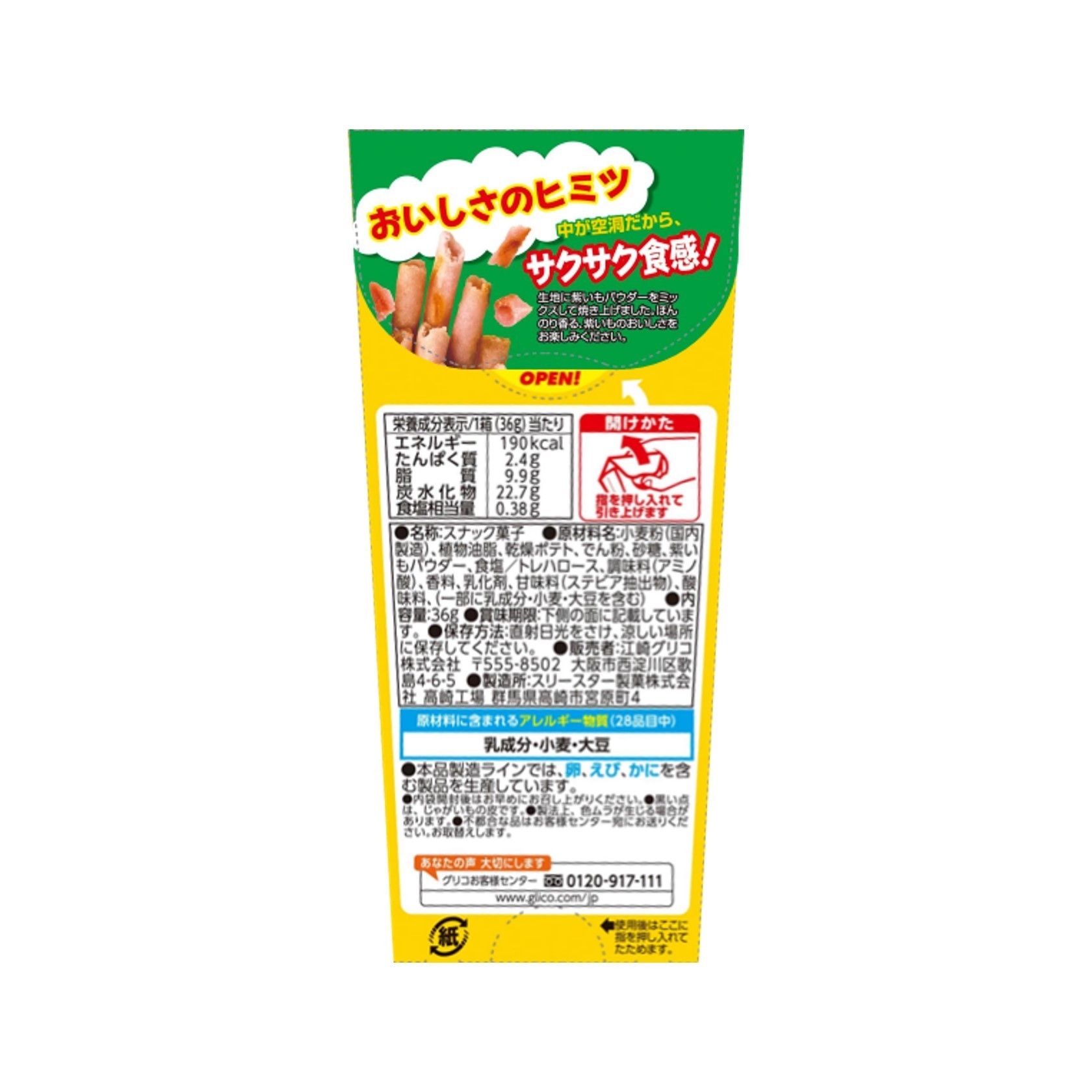 小麦粉(国内製造)、植物油脂、乾燥ポテト、でん粉、砂糖、紫いもパウダー、食塩/トレハロース、調味料(アミノ酸)、香料、乳化剤、甘味料(ステビア抽出物)、酸味料、(一部に乳成分・小麦・大豆を含む)