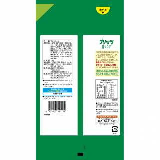 小麦粉(国内製造)、植物油脂、ショートニング、砂糖、でん粉、乾燥ポテト、野菜ペースト・ブイヨン混合品、イースト、小麦たんぱく、食塩、酒かす、コンソメシーズニング、香味油、こしょう/調味料(無機塩等)、加工デンプン、乳化剤、香料、酸味料、(一部に乳成分・小麦を含む)