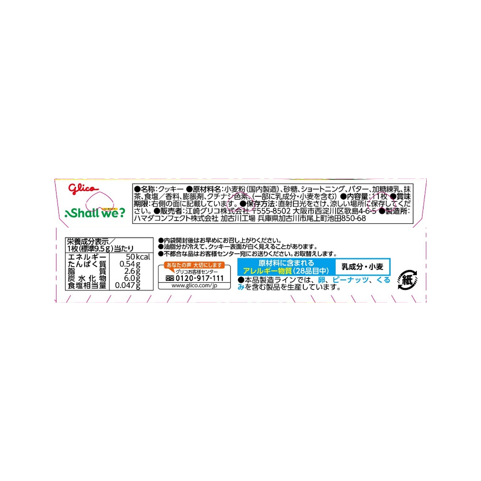 小麦粉(国内製造)、砂糖、ショートニング、バター、加糖練乳、抹茶、食塩/香料、膨脹剤、クチナシ色素、(一部に乳成分・小麦を含む)