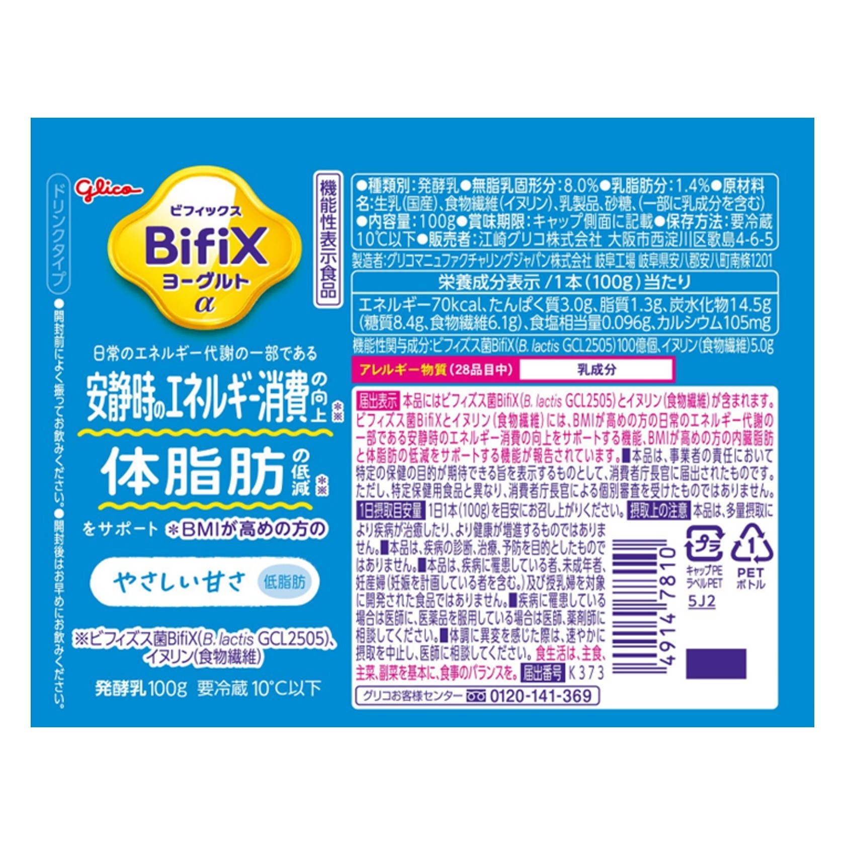 BifiXヨーグルトα ドリンクタイプ やさしい甘さ・低脂肪 100g