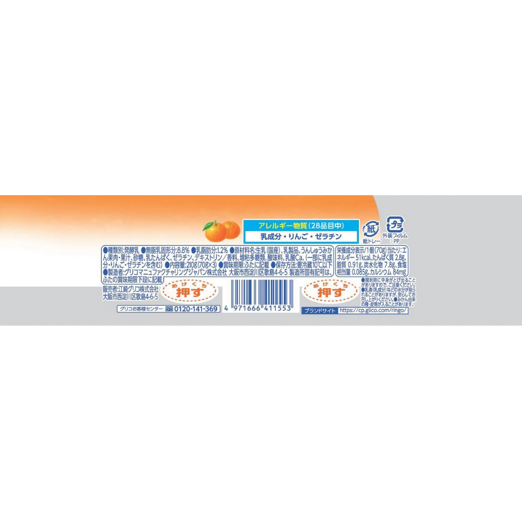 生乳(国産)、乳製品、うんしゅうみかん果肉・果汁、砂糖、乳たんぱく、ゼラチン、デキストリン/香料、増粘多糖類、酸味料、乳酸Ca、(一部に乳成分・りんご・ゼラチンを含む)