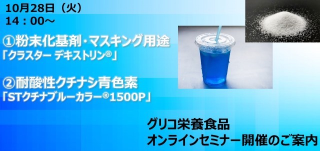 【オンラインセミナー】10月開催 機能性素材セミナーセミナー ~クラスター デキストリン・STクチナブルーカラー1500P~ のご案内