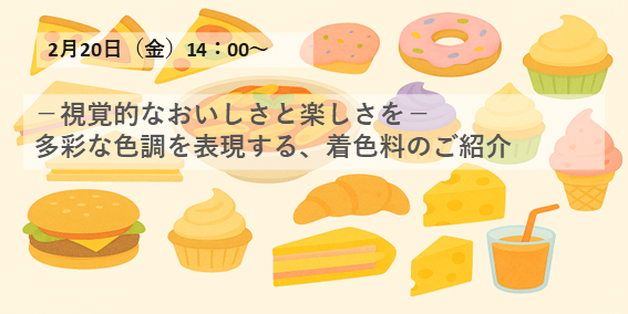 【オンラインセミナー】2月開催 商品紹介セミナー ~視覚的なおいしさと楽しさを~ 多彩な色調を表現する、着色料のご案内